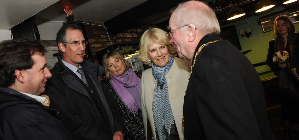 The Duchess of Cornwall visited flooded out residents in the town bridge area of Malmesbury on 7 December 2012. The river burst its banks on 25 November.
