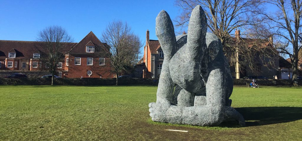 Artwork by renowned sculpture Sophie Ryder which was part of an installation in the grounds of Salisbury Cathedral called Relationships.
