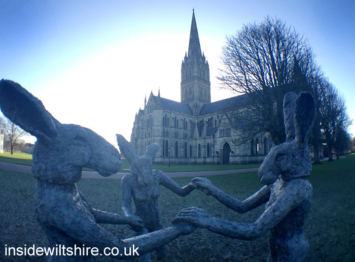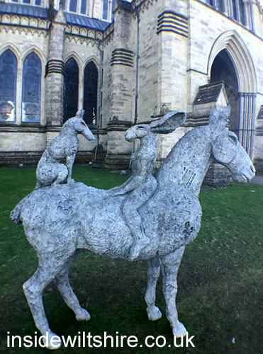 Artwork by renowned sculpture Sophie Ryder which was part of an installation in the grounds of Salisbury Cathedral called Relationships.